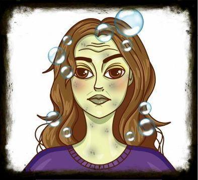 На первый взгляд, все очень плохо: — спутанные и жесткие волосы; — нездоровый цвет лица; — глубокие морщины; — черные точки и закупоренные поры; — пожелтевшие зубы. А главное, в глазах Гретты печаль, ведь она хочет выглядеть лучше всех на слёте ведьм 31 октября. |